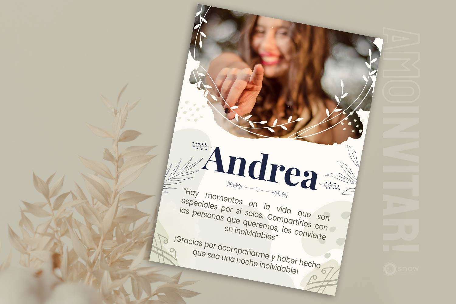 Nuestra Tarjeta de Agradecimiento es la mejor forma de dar las gracias a todos los invitados que participaron de la fiesta, de una forma práctica y elegante. Incluye una tarjeta con tu nombre y una frase personalizable, que se puede enviar fácilmente por Whatsapp, email, o por donde prefieras y se puede combinar con todos los modelos de Invitaciones Web interactivas que tenemos.