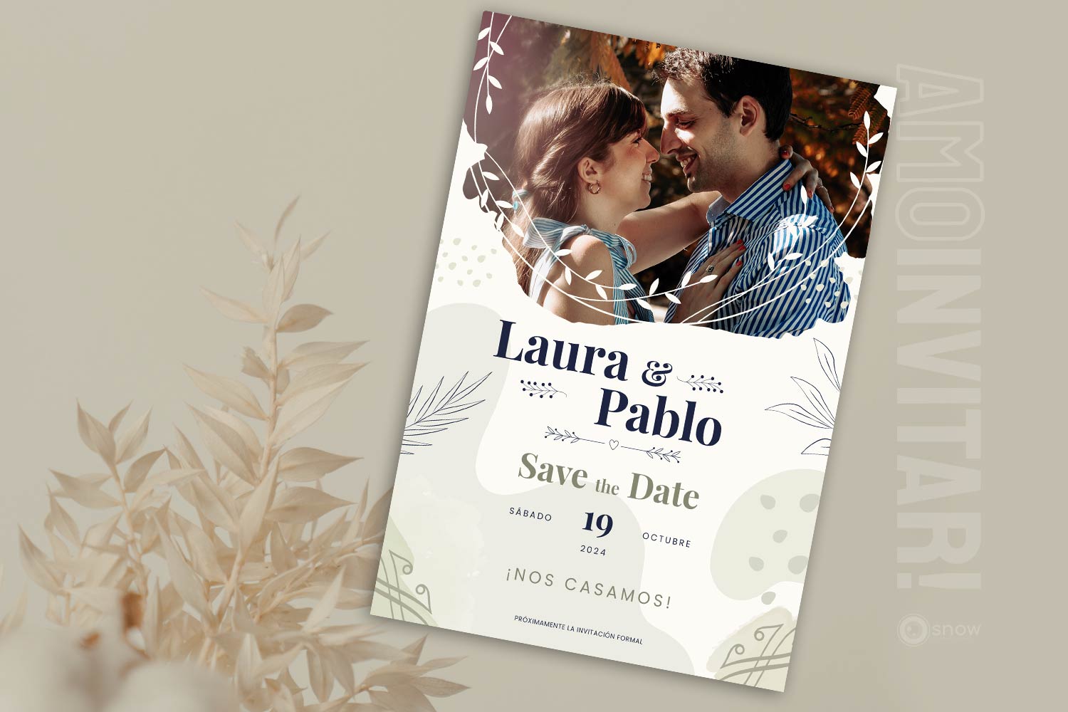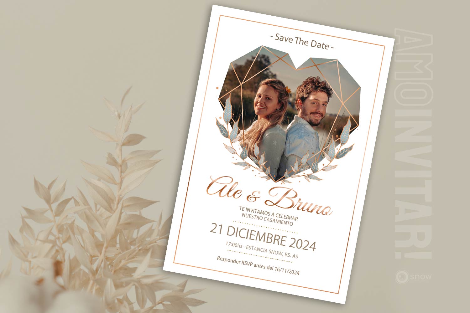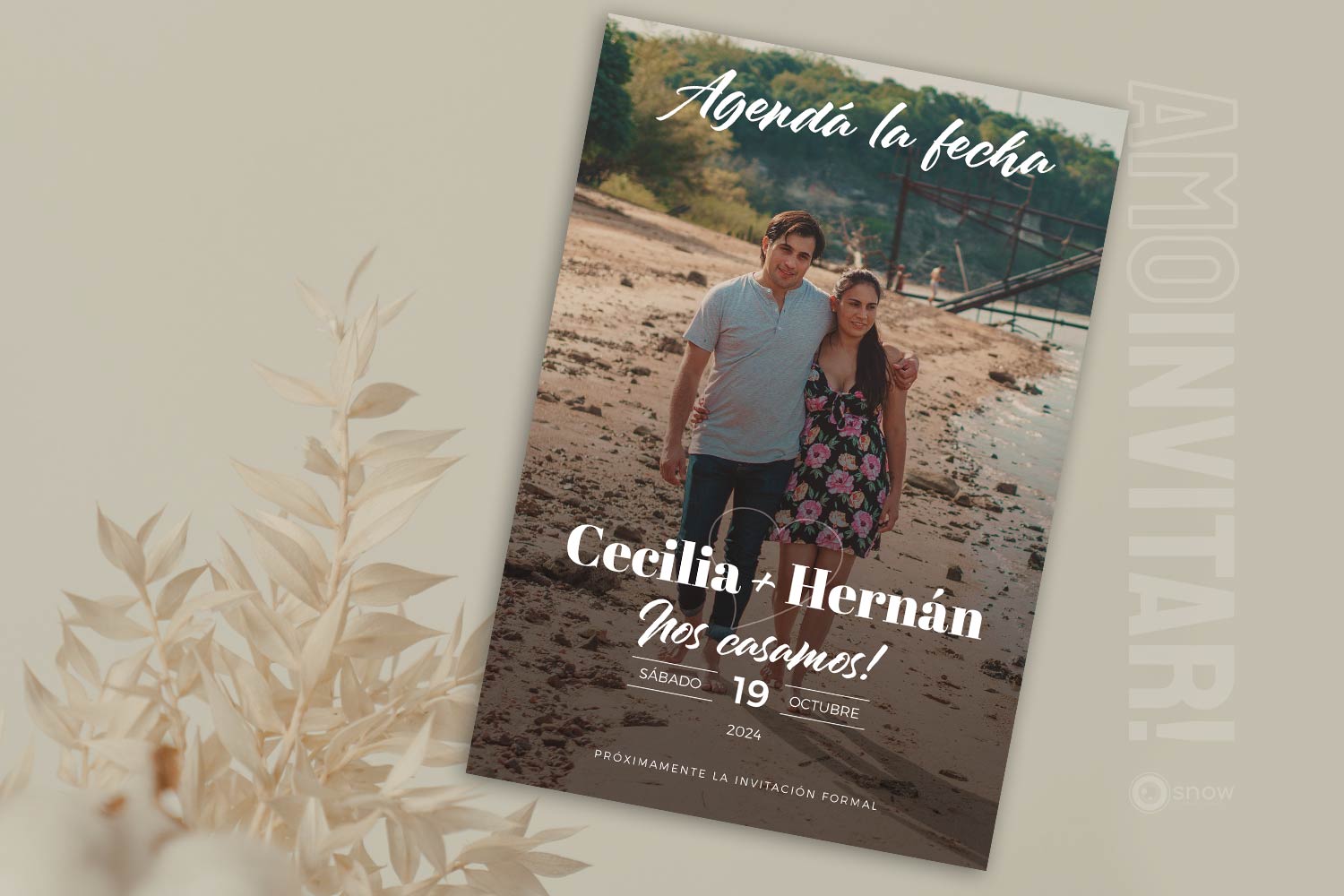 Nuestra Tarjeta Save the Date - Foto es un adelanto para anunciar a los invitados el casamiento, de una forma práctica y elegante, para que vayan agendando la fecha. Incluye una tarjeta con los nombres y la fecha que se puede enviar fácilmente por Whatsapp, email, o por donde prefieras y se puede combinar con todos los modelos de Invitaciones Web interactivas que tenemos.