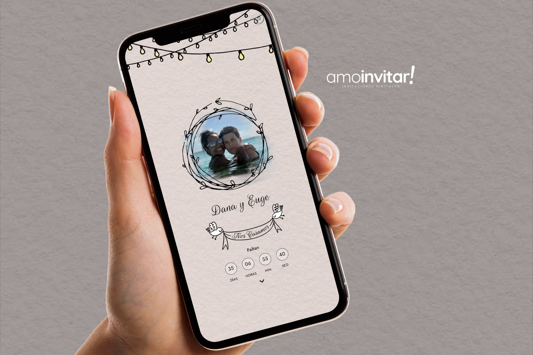 Si, el link de la Invitación Web o el Save The Date Web se personaliza con tu nombre o el nombre de la pareja y se verá así: amoinvitar.com/tunombre.